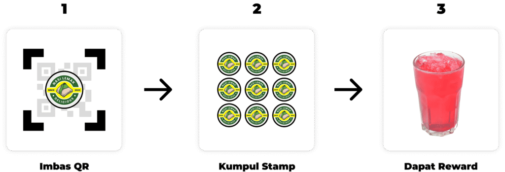 Berikut contoh bagaimana Alia (customer anda) boleh kumpul stamp: